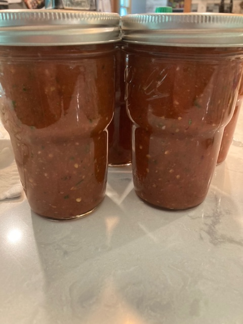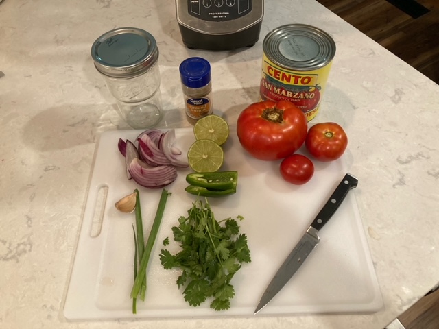 We were all home this weekend since it had rained and decided to make some homemade salsa! It was an enjoyable time together putting it all together and seeing and tasting the end result! Here is the recipe below: